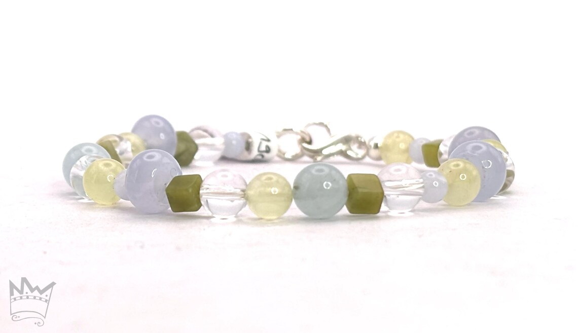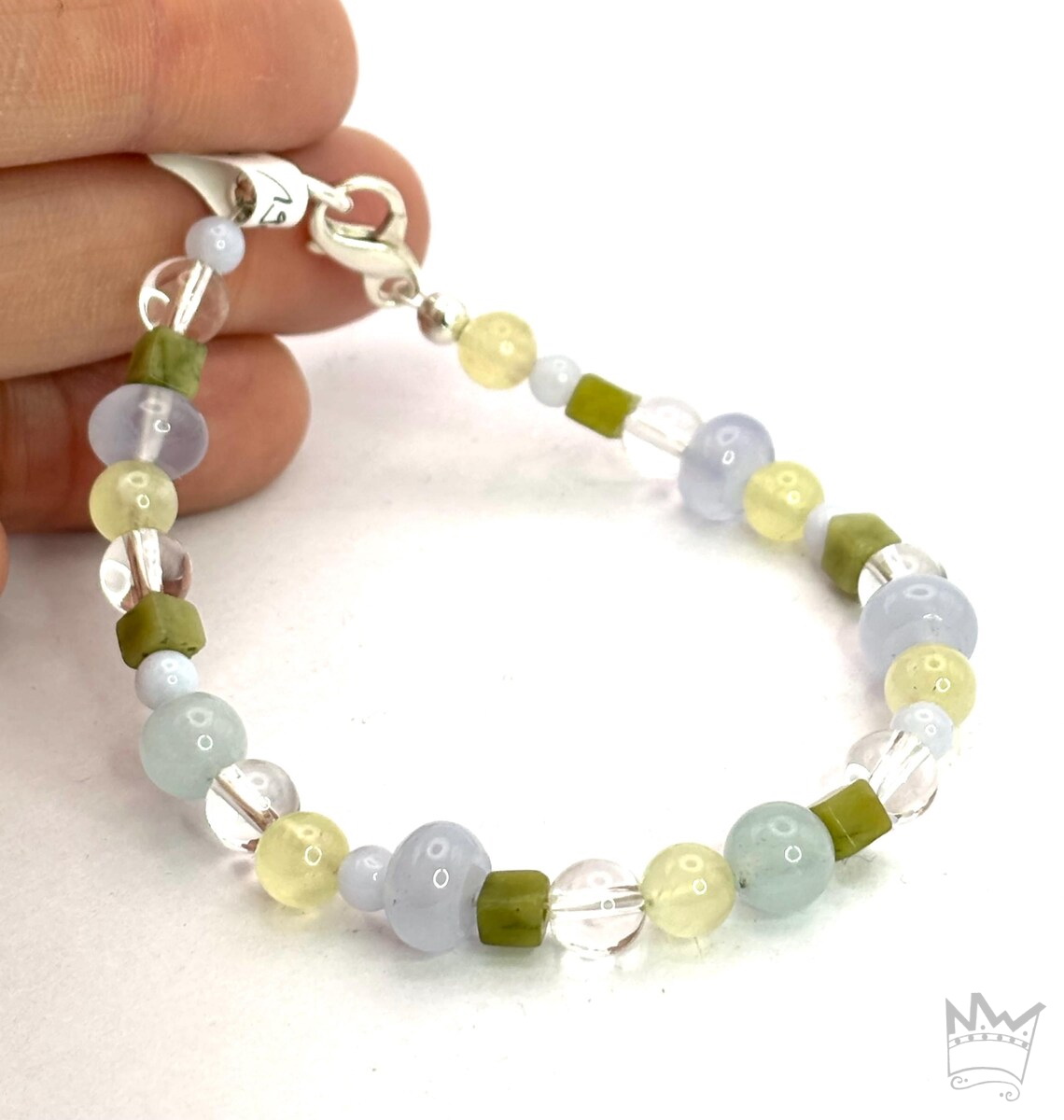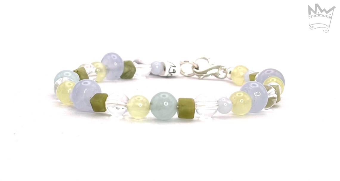 - Material: Bergkristall, Chalcedon, Prehnit, Serpentin, Sterlingsilber