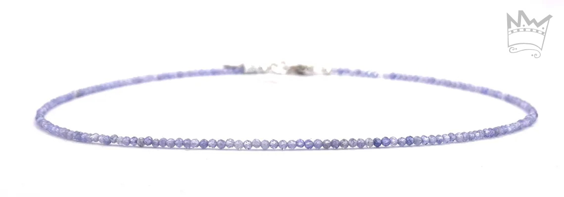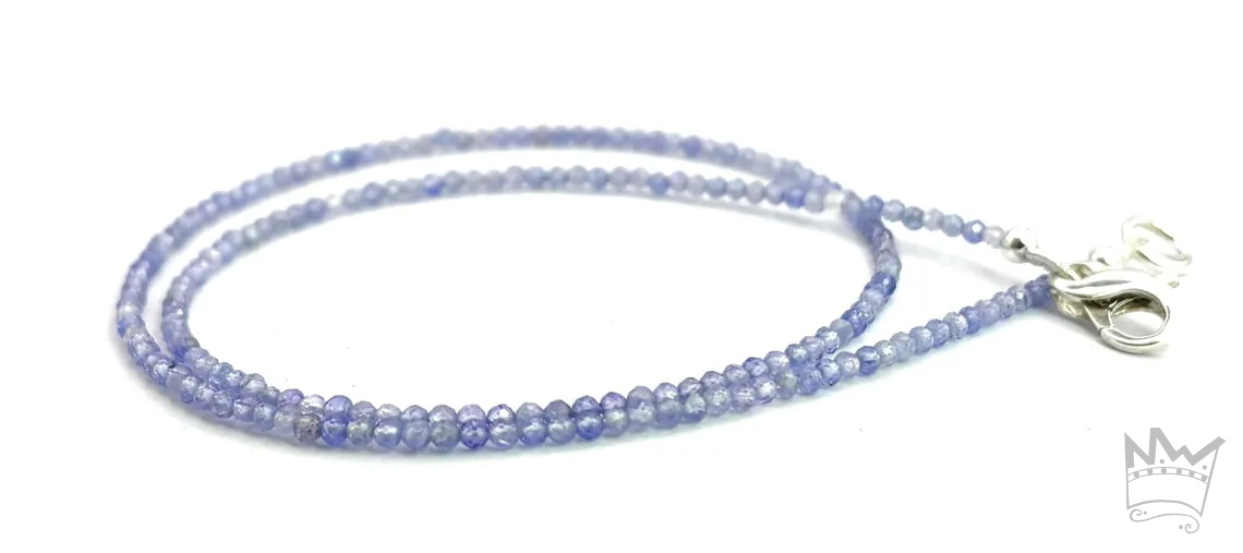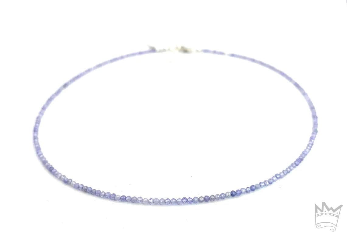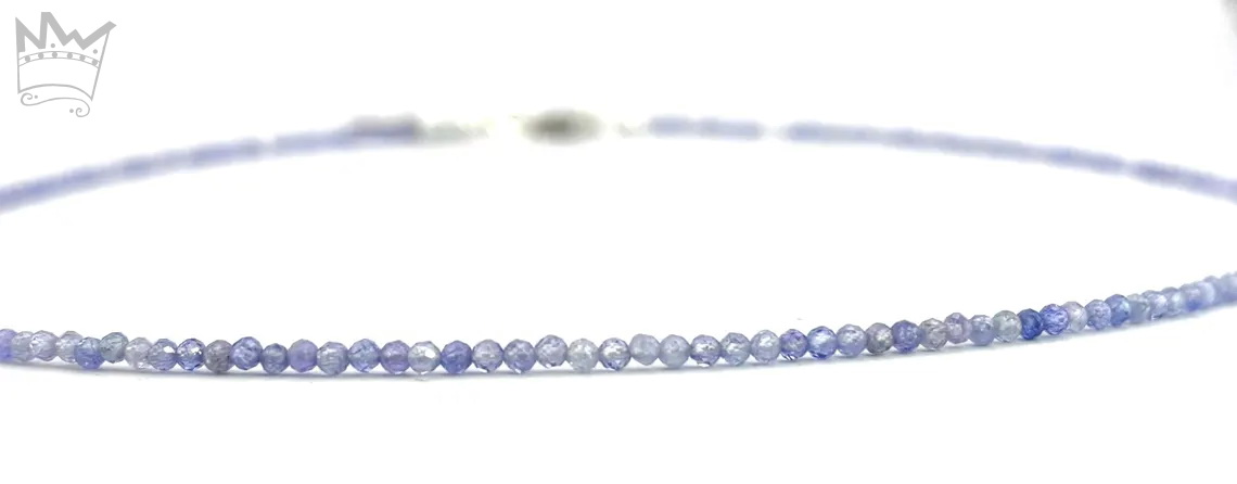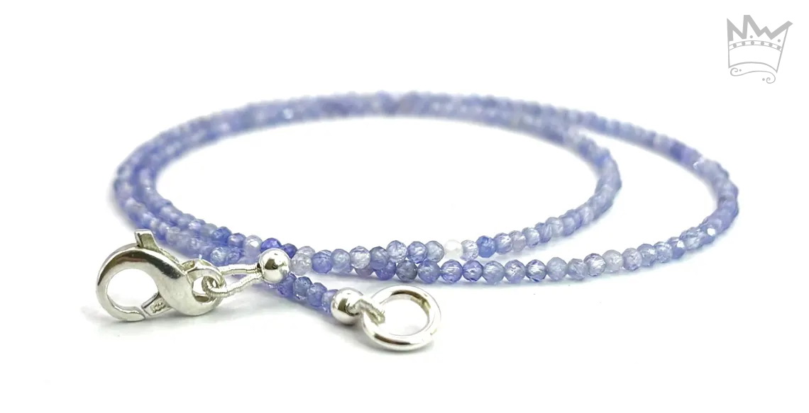 Eine feine Tansanitkette aus facettierten, runden Tansanitkugeln. Die feinen, zarten Farbnuancen des schönen Tansanitblau sorgt für eine subtile Lebendigkeit.
