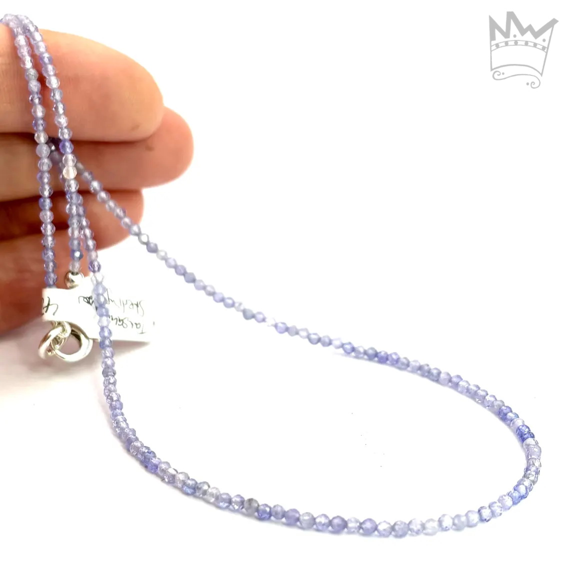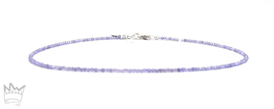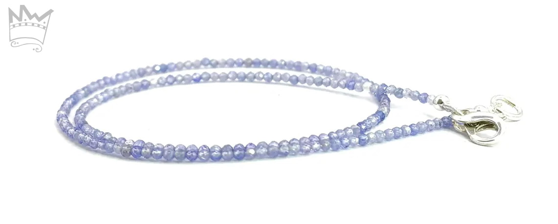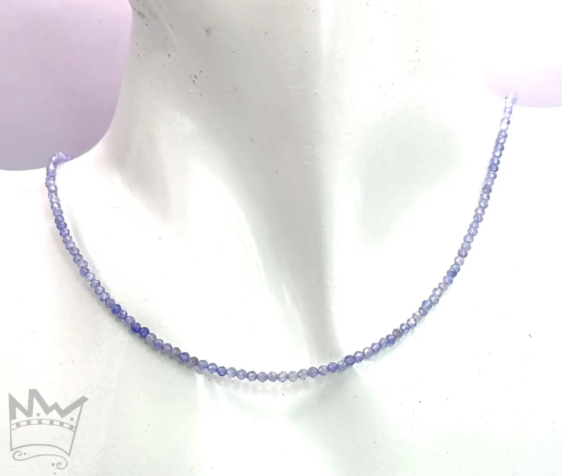 Eine feine Tansanitkette aus facettierten, runden Tansanitkugeln. Die feinen, zarten Farbnuancen des schönen Tansanitblau sorgt für eine subtile Lebendigkeit.